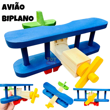Avião Biplano em Madeira Colorido Aviãozinho infantil (Produto Premium as crianças merecem)