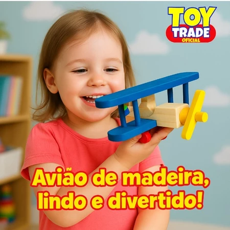 Aviãozinho de madeira colorido, as rodinhas giram tornando a brincadeira muito mais divertida e atraente.