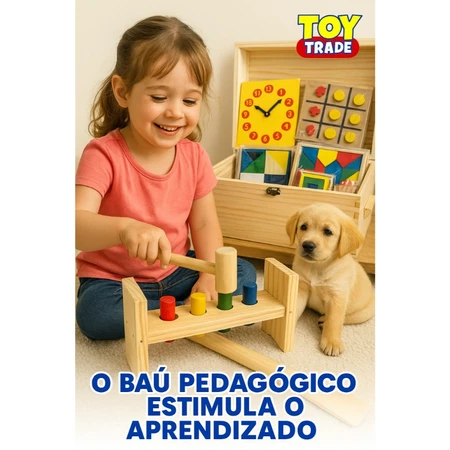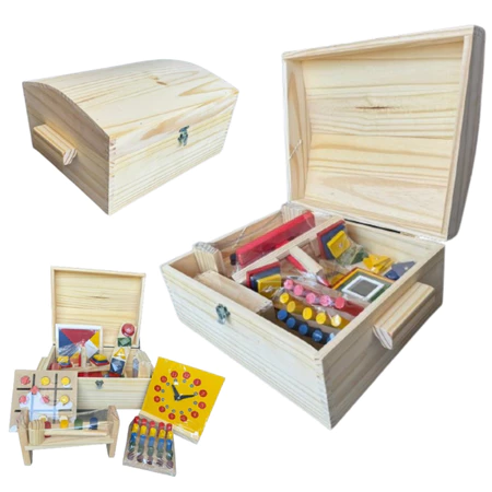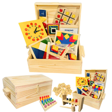 BAÚ PEDAGÓGICO COM 10 JOGOS EM MADEIRA