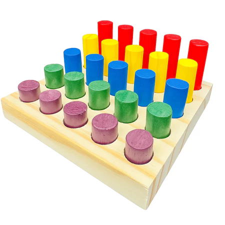 1 tabuleiro com 25 pinos coloridos em 5 alturas