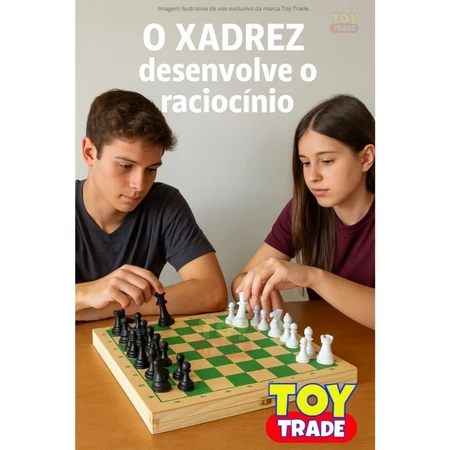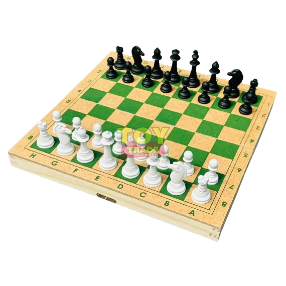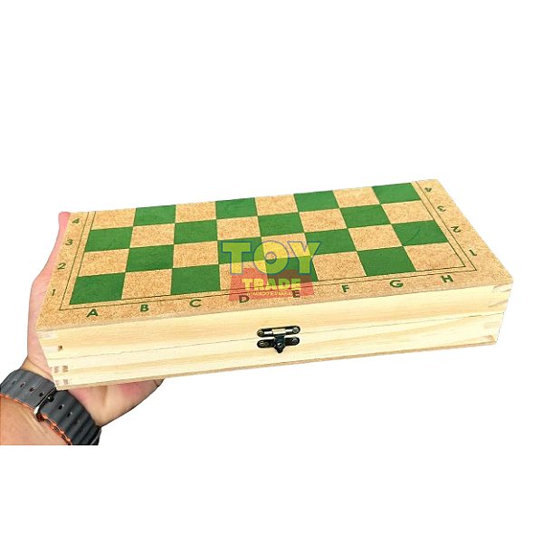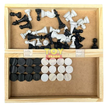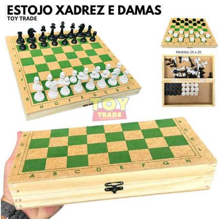 JOGO DE XADREZ E DAMAS COM ESTOJO EM MADEIRA