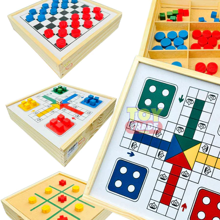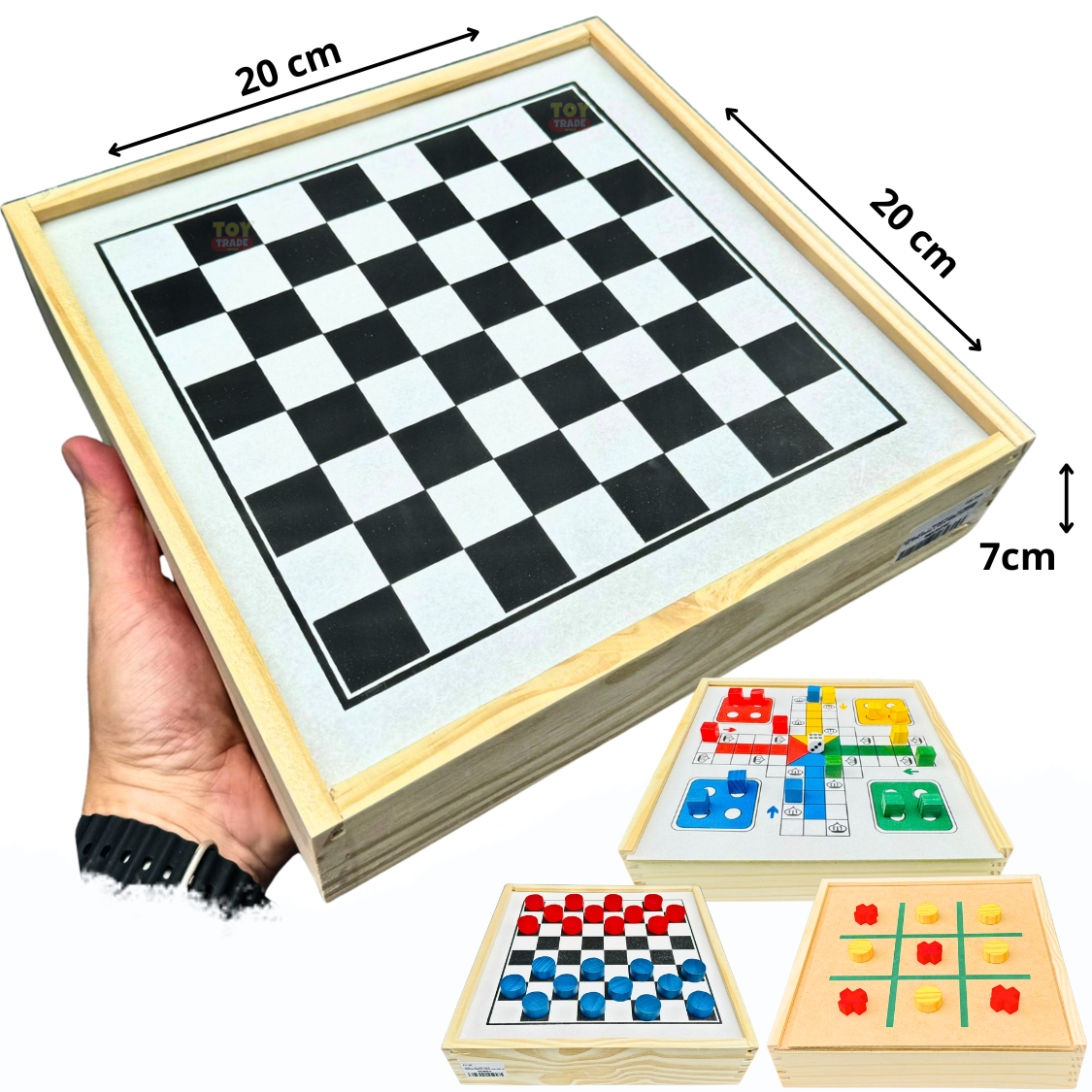 TABULEIRO JOGOS CLÁSSICOS 3 EM 1 EM MADEIRA