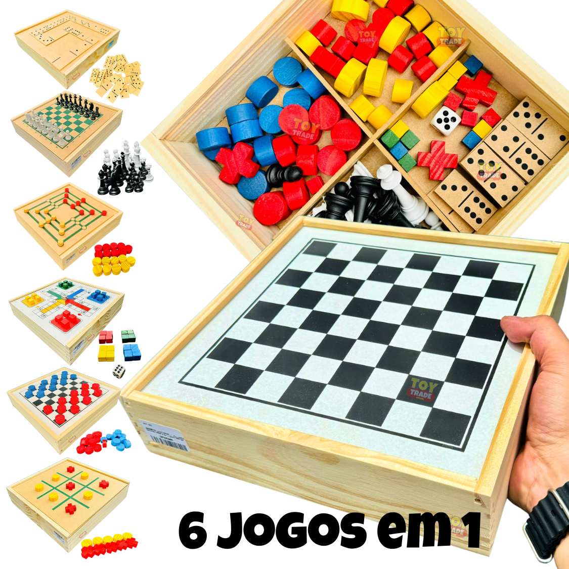 TABULEIRO JOGOS CLÁSSICOS 6 EM 1 EM MADEIRA