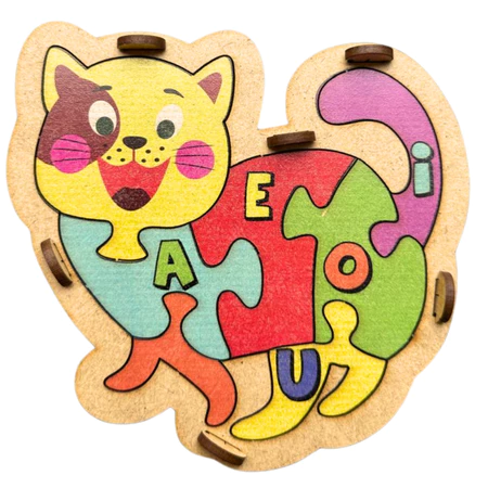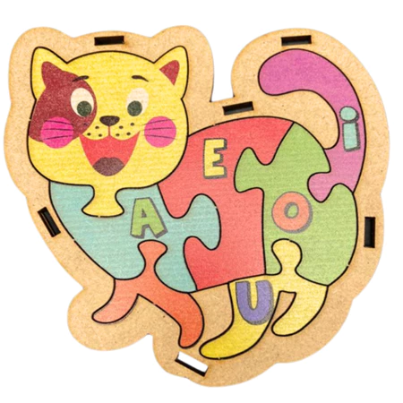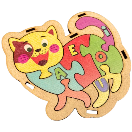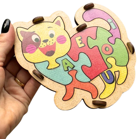 Quebra-Cabeça Gato Brinquedo Pedagógico com Vogais Alfabetização Letras Jogo Gatinho Toy Trade