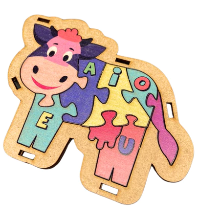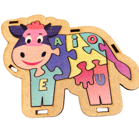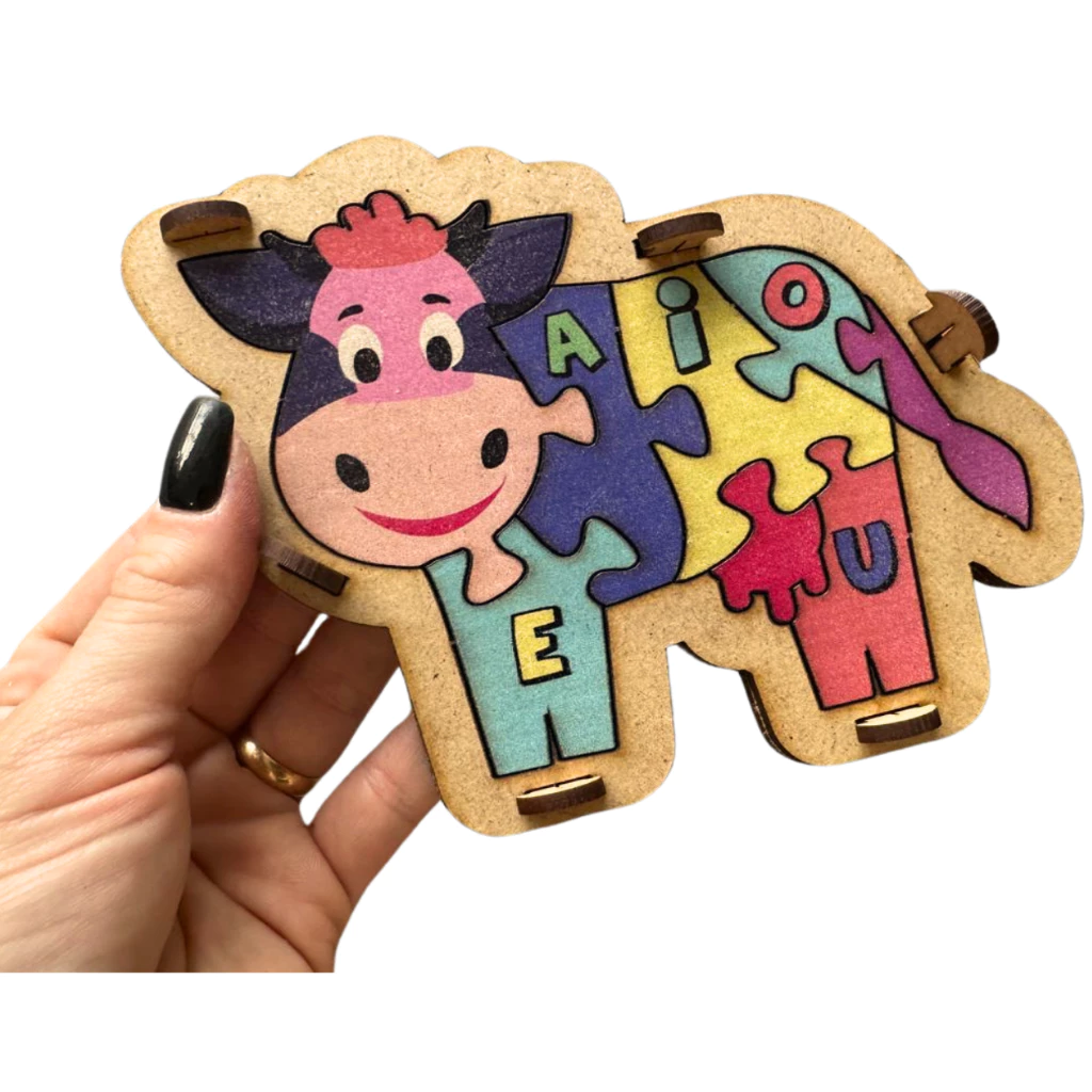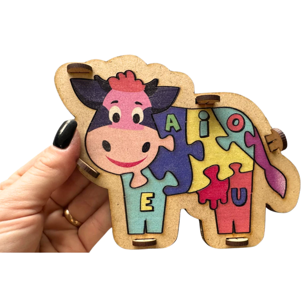 Quebra-Cabeça Vaquinha Vaca Jogo Educativo Pedagógico com Letras Vogais Aprender a Falar Toy Trade